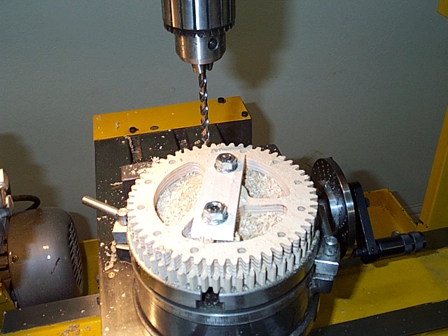 The rotary table is used to index the equally spaced holes for the 1/4"