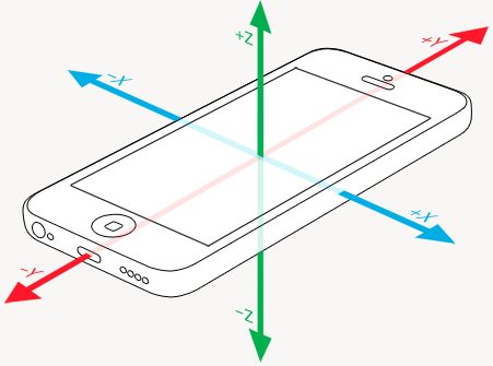 Place the device FACE UP on a flat surface and rotate to find the angle relative to the starting angle. Tap "ZERO" to create a new starting angle. Use the side of your device as a ruler to draw straight lines at different angles. ProTrac uses attitude from the CoreMotion framework to determine the yaw angle of the device about an imaginary arrow (+Z) pointing up out of the screen shown in green in the image below.